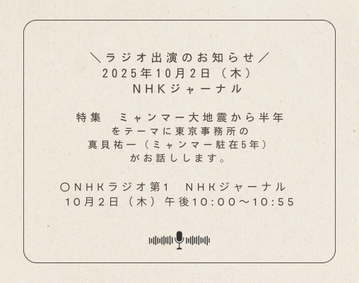 【ラジオ出演のお知らせ】NHKジャーナル 2025年10月2日(木)
