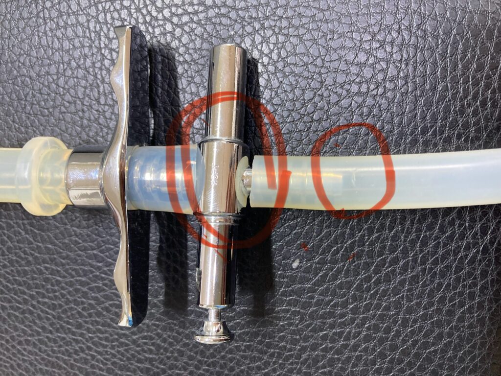 ただ、チューブの状態を確認したところ、先端付近に小さな亀裂が見つかりました。亀裂部分は、長さに余裕があったため念のためカットしました。